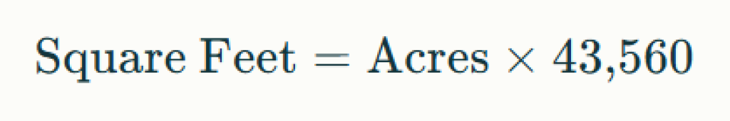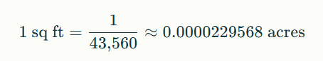 | Acres | Square Feet (sq ft) |