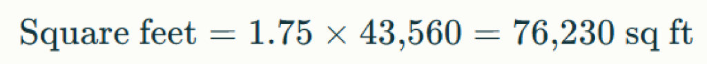 Example: 1.75 acres. - Use the conversion factor